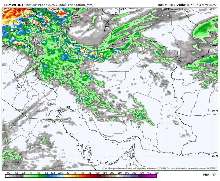 وی افزود: این شرایط ذکر شده در روز چهارشنبه (۱۰ اردیبهشت‌) در غرب دامنه‌ها و ارتفاعات البرز مرکزی و شرقی سواحل دریای خزر و برخی مناطق در مرکز و شرق کشور ادامه خواهد داشت و روز پنجشنبه (۱۱ اردیبهشت‌) در ارتفاعات البرز مرکزی و برخی نقاط در مرکز و شرق کشور و جمعه در برخی نقاط شمال غرب و مناطق مرکزی کرمان بارش پراکنده دور از انتظار نیست.